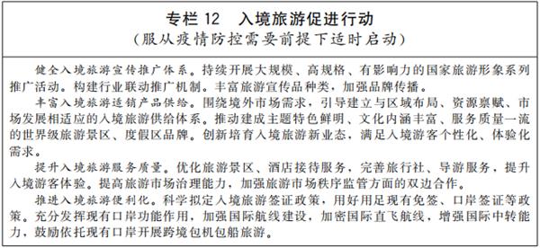 “十四五”旅游业发展规划:在确保防疫安全的前提下适时启动入境旅游促进行动