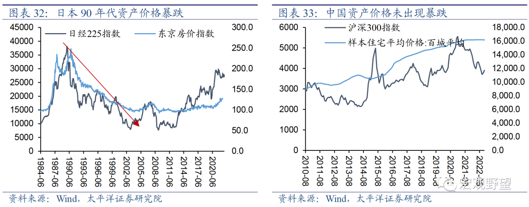 2.3. 中国经济衰退是短期的而非长期的野村证券首席经济学家曾用“资产负债表衰退”理论来解释日本1990年泡沫经济破裂之后的长期低迷。其原理在于资产泡沫(通常为房价及股市)破裂消灭了巨量的财富,导致企业和居民的资产端大幅缩水。但负债端仍是刚性的,为了修补资产负债表,企业不得不忙于还债,经济的目标从利润最大化转向为负债最小化。因此,企业和居民不再热衷于“开源”,而是专注于“节流”,私人部门借贷意愿大幅降低,货币政策无法刺激信贷,进入流动性陷阱。大规模的信贷下滑导致总需求坍塌,长期通货紧缩,陷入到债务——通缩陷阱之中。经济因此陷入长期衰退。