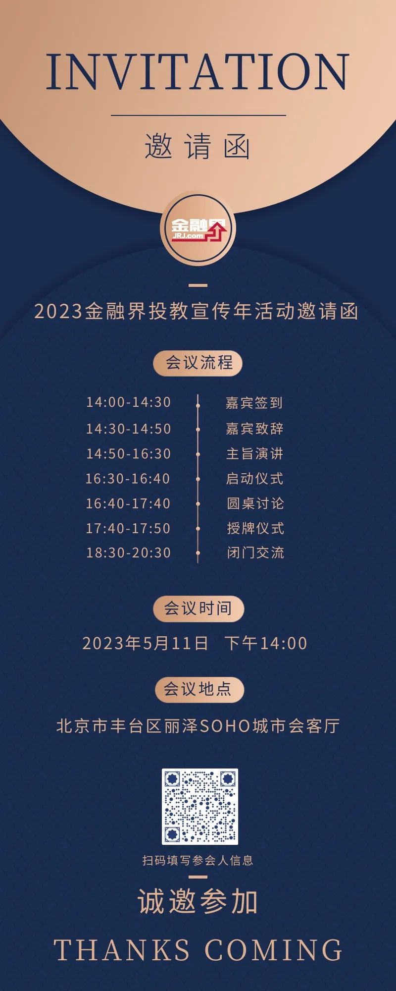 为深入贯彻落实党的二十大对经济金融工作的有关部署,厚植“理性投资、价值投资、长期投资”理念,在5.15全国投资者保护宣传日来临之际,金融界将联合多家金融机构共同发起投教宣传年活动,并于5月11日举办2023投资者教育融合发展研讨会暨金融界投教宣传年启动仪式,普益标准为支持单位,西南财经大学信托与理财研究所作学术支持。