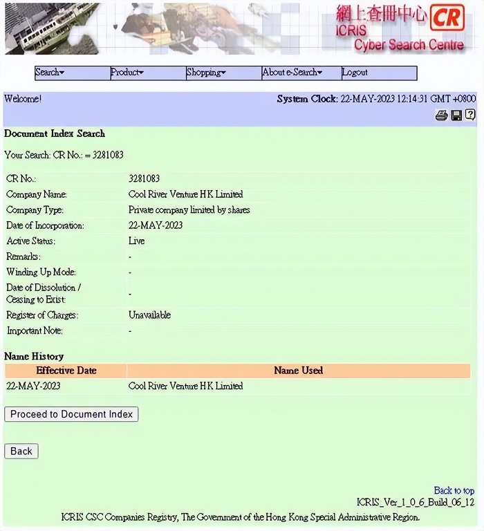 他在近期成立的这家个人投资基金名为Cool River Venture,注册地在香港,性质是私人股份有限公司,并于2023年5月22日生效。