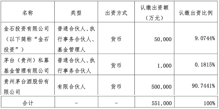茅台两支新参与设立的基金情况 图片来源:官方公告
