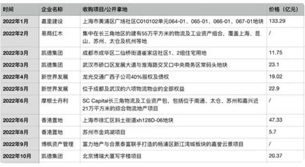 2022年,克而瑞地产发布的一则报告显示,当年有嘉里建设、香港置地、易商红木、凯德集团等多家机构在内地房地产市场进行项目收购,仅以当时披露的数据统计,总金额超过283亿元人民币。