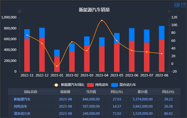 国泰君安证券认为尽管 8 月份是中国传统的乘用车销售淡季,但乘用车销售依然强劲。由于8 月各大整车厂延续前期优惠,加上车展刺激,8 月国内乘用车销量并未出现大幅下滑。8 月相对强劲的环比需求超出市场预期。中国乘联会数据显示,2023 年前 8 个月,我国狭义乘用车零售销量达到 192 万辆,同比增 2.5%,环比增 8.6%;其中,新能源汽车零售销量约 71.6 万辆,同比增 34.5%,环比增 11.8%,渗透率达 37.3%,创历史新高。根据目前 9月的销售数据,车市销量势头有望持续。