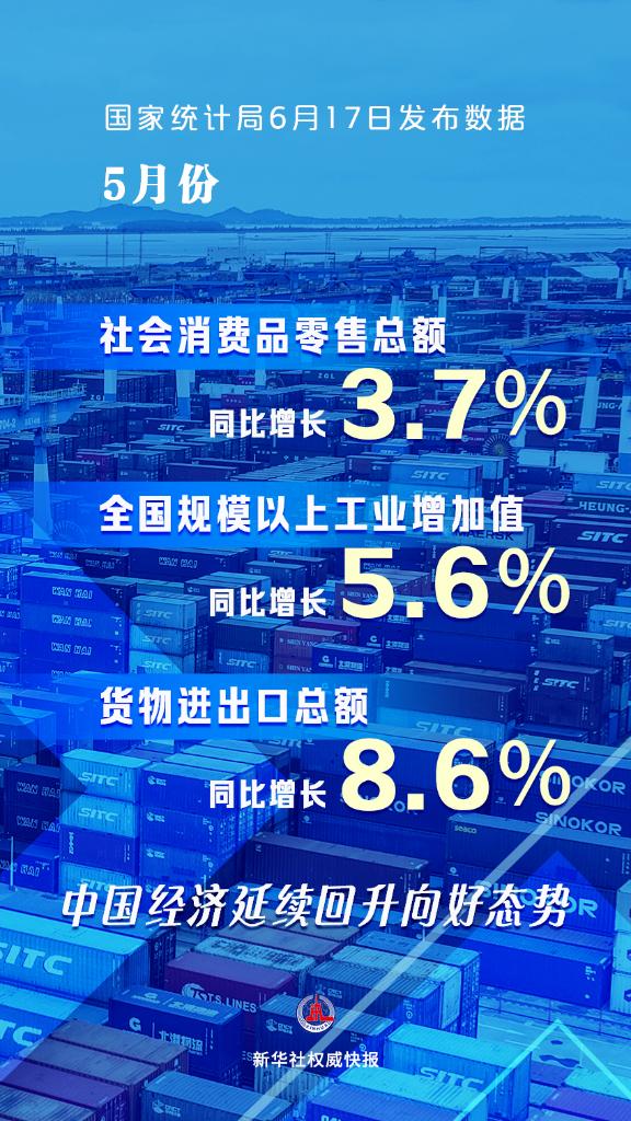 (原标题:新华社权威快报|5月份中国经济延续回升向好态势)