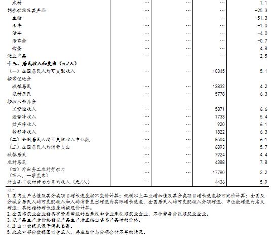 (1)国内生产总值及其分类项目增长速度按不变价计算,规模以上工业增加值及其分类项目增长速度按可比价计算,均为实际增长速度;其他指标除特殊说明外,按现价计算,为名义增长速度。